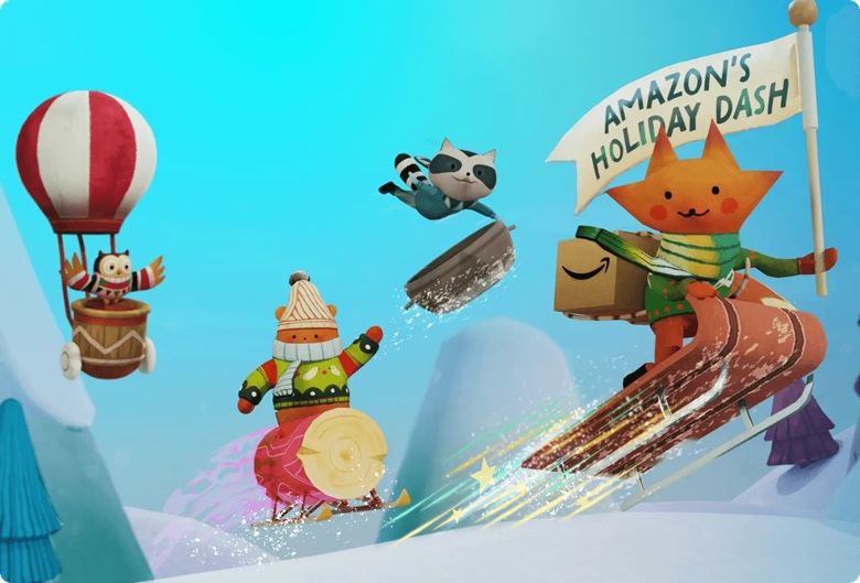 Amazon’s strategy centers on creating parallel digital experiences to complement their annual gift book, featuring woodland creature characters, bridging physical and digital realms. This approach began in 2022 with “Amazon Trip Around the Blox” and has evolved significantly through subsequent iterations.