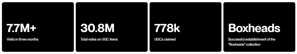 - Expansion of UGC strategy beyond “Boxheads” to diverse virtual fashion