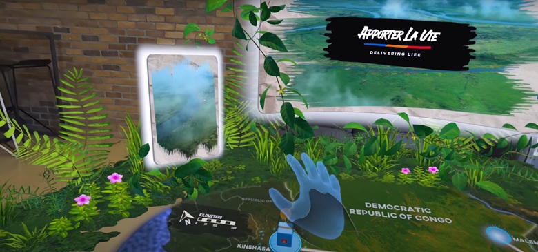 Apporter La Vie was designed as an interactive VR/MR experience to immerse participants directly in the realities faced by health workers. The experience follows Kasongo, a healthcare worker navigating difficult terrain to deliver vaccines to isolated families.