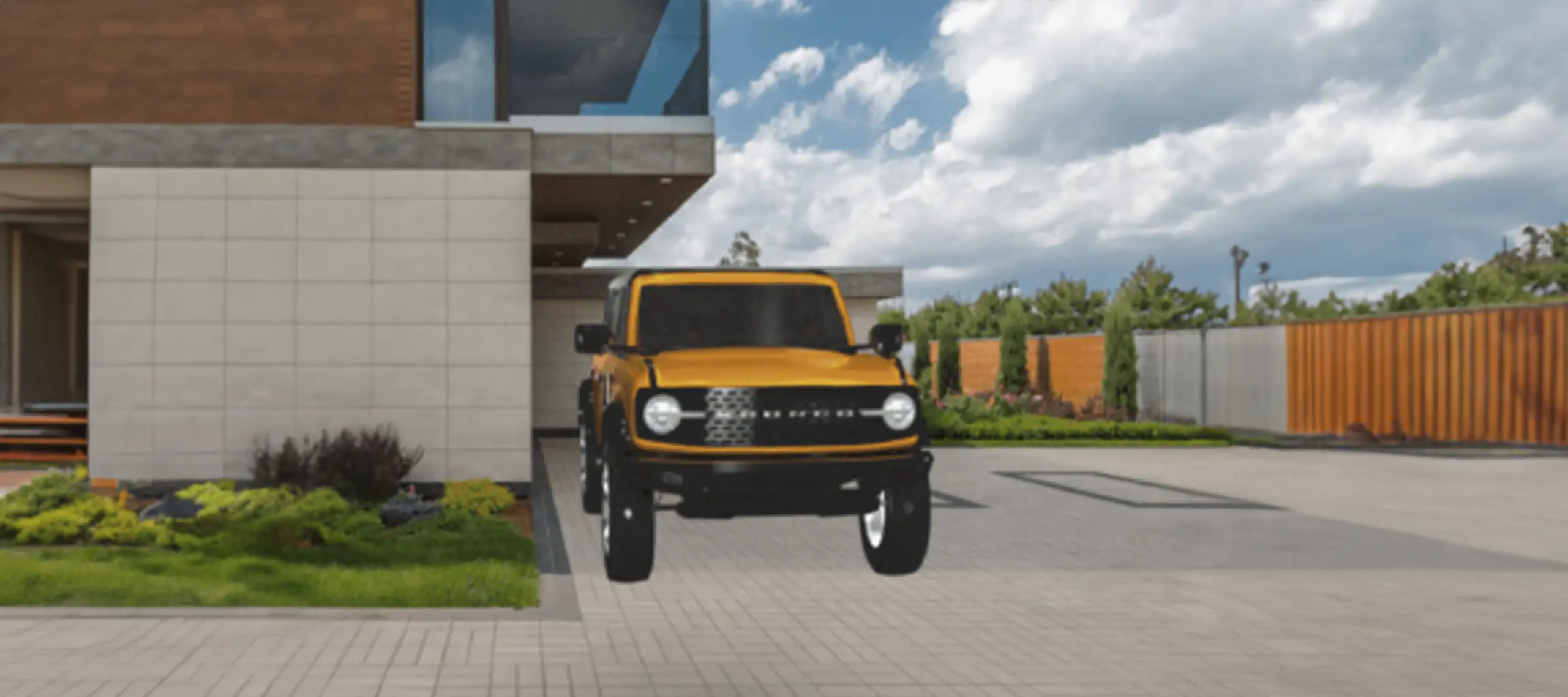 One of the standout elements of this activation was the life-sized AR rendering of the Ford Bronco, modeled to exact real-world proportions. This precision allowed users to fully experience the vehicle’s scale and presence, making the AR interaction feel remarkably close to reality. Interactivity played a central role: strategically placed hotspots around the car revealed detailed information about off-road capabilities, technology, and interior features, transforming the experience from passive viewing into active exploration. Users could rotate and place the Bronco freely within their own environment, with the WebAR application accurately detecting the floor to ensure natural placement, whether in a driveway, living room, or office. To further enhance immersion, users could step inside the vehicle to explore the interior, examining seats, dashboard, and controls up close. Finally, seamless sharing tools enabled users to capture and post videos or screenshots.