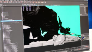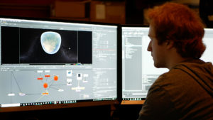 The beginning of the experience highlights a journey high above the planet down to the Earth’s surface. Here one of our developers is working on the animation effect.