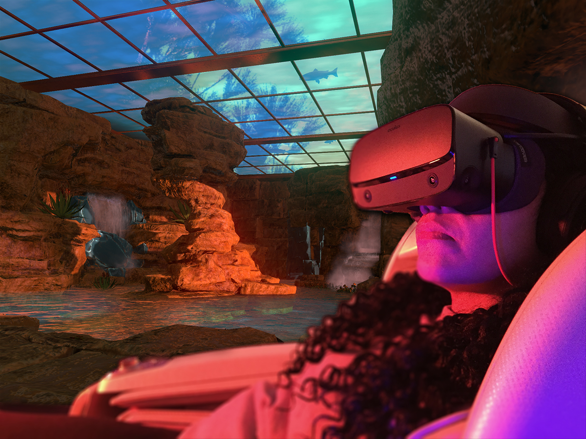 Esqapes Immersive Relaxation is a first-of-its-kind, VR augmented spa. Angeles Vista Creative Ventures, LLC combined beautifully crafted VR worlds with automation and traditional wellness practices. They accomplish this by pairing exotic virtual environments with extra sensory components including wind, heat and aromatherapy, all while receiving a full-body massage. Each Esqape environment is specifically designed to stimulate multiple senses with the goal of helping the mind and body to relax. Immersive Relaxation is a novel method of immersing users into a virtual environment, while ushering them into a heightened state of relaxation. Using this system taps into the key senses that people use to evaluate their surroundings (sight, sound, smell, touch) which in turn helps them to relax and feel comfortable.