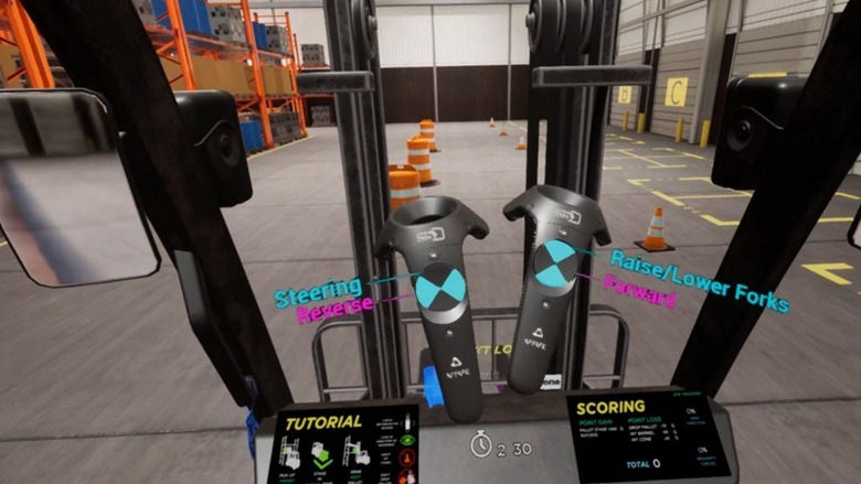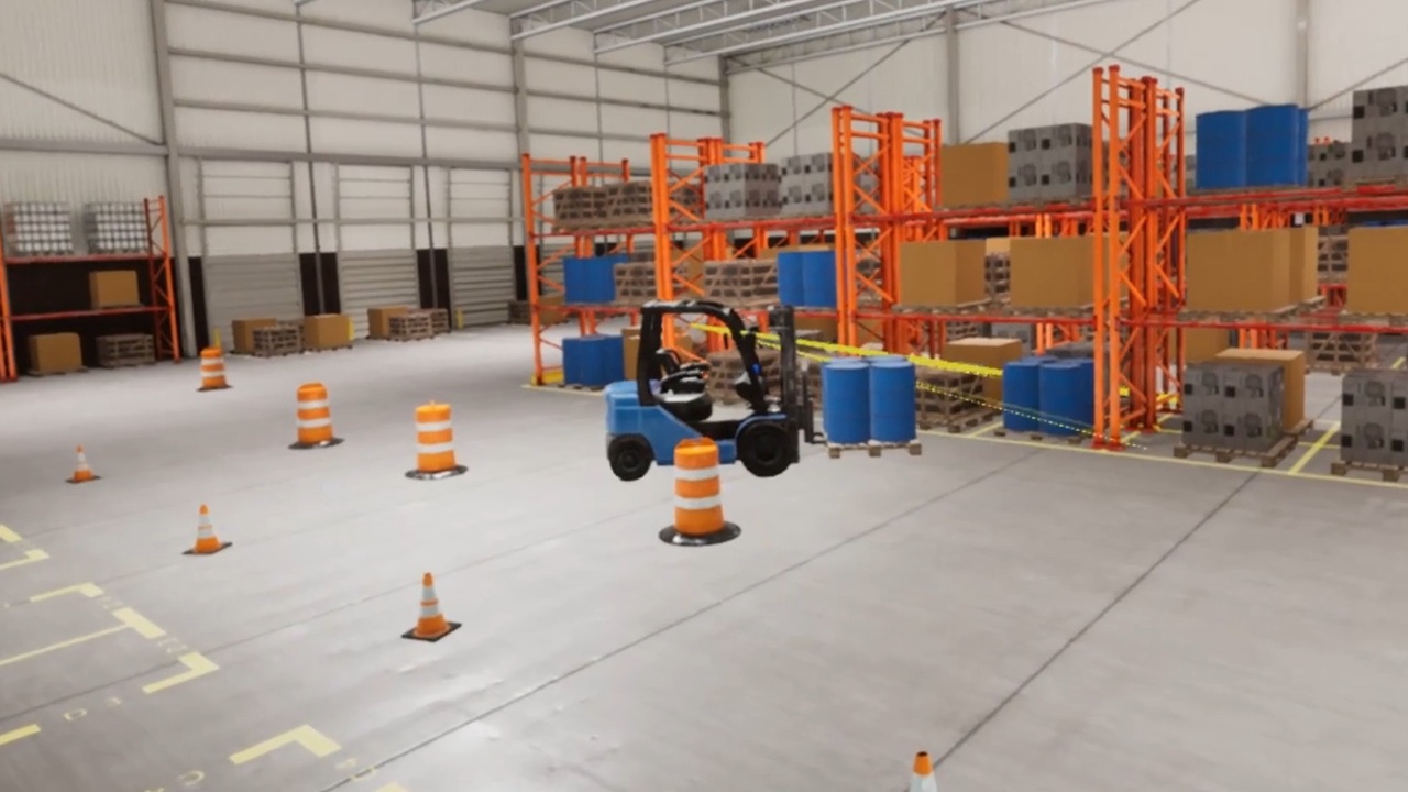 A VR forklift training simulation that demonstrates how HTC VIVE’s Pro Eye headset can be used to enhance VR for enterprise.