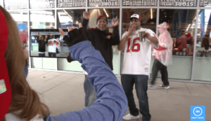 First, NEXT/NOW filmed the mascot and cheerleaders as they rallied and cheered on their ‘Niners. Following that, they created an augmented reality video capture app allowing the video of the cheerleaders and mascot to be placed over a new video taken at the game of the fan cheering. Fans then downloaded the video of them cheering with the mascot and cheerleaders and were able to share it via social media. It was the ultimate fan takeaway!
