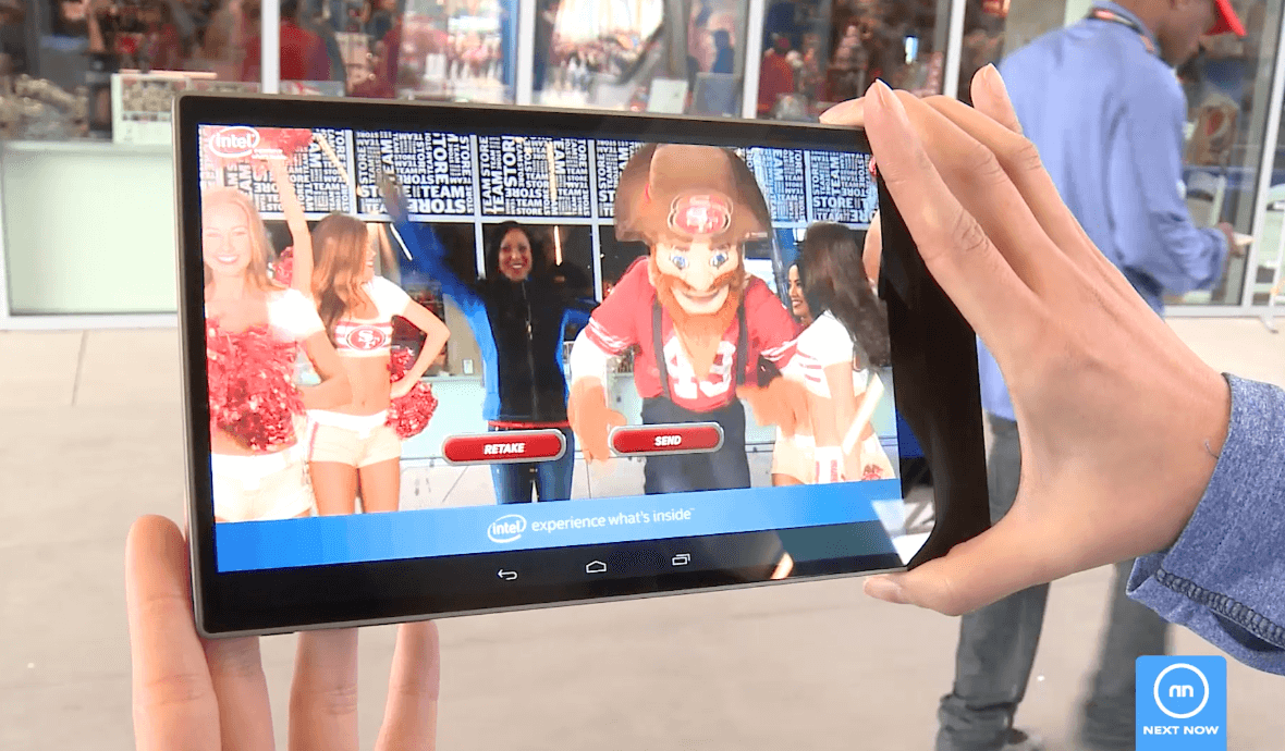 First, NEXT/NOW filmed the mascot and cheerleaders as they rallied and cheered on their ‘Niners. Following that, they created an augmented reality video capture app allowing the video of the cheerleaders and mascot to be placed over a new video taken at the game of the fan cheering. Fans then downloaded the video of them cheering with the mascot and cheerleaders and were able to share it via social media. It was the ultimate fan takeaway!