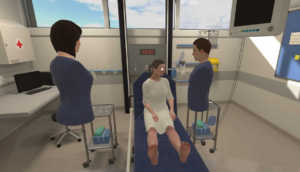 Using VR headsets, learners are immersed in clinical environments with dynamic, engaging patients in true-to-life clinical scenarios where they can assess and treat patients in collaboration with their colleagues. Learners can see multiple patients, interviewing, examining, investigating, engaging with their interdisciplinary team to treat their patient – who responds as in real life.