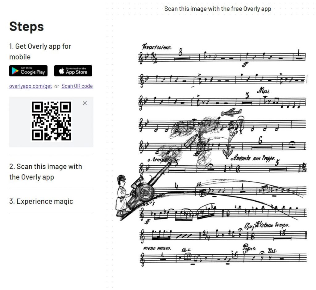 “Notes are just pieces of paper with writing on them when sheet music lies on a shelf. They only become music when the score is in the hands of musicians. Through scanning the sheet music with the Overly app, our visitors can experience exactly how it is to bring notes to life and create a musical experience. And they can do it by using something they have in their hands every day — their mobile devices,” says Sanita.