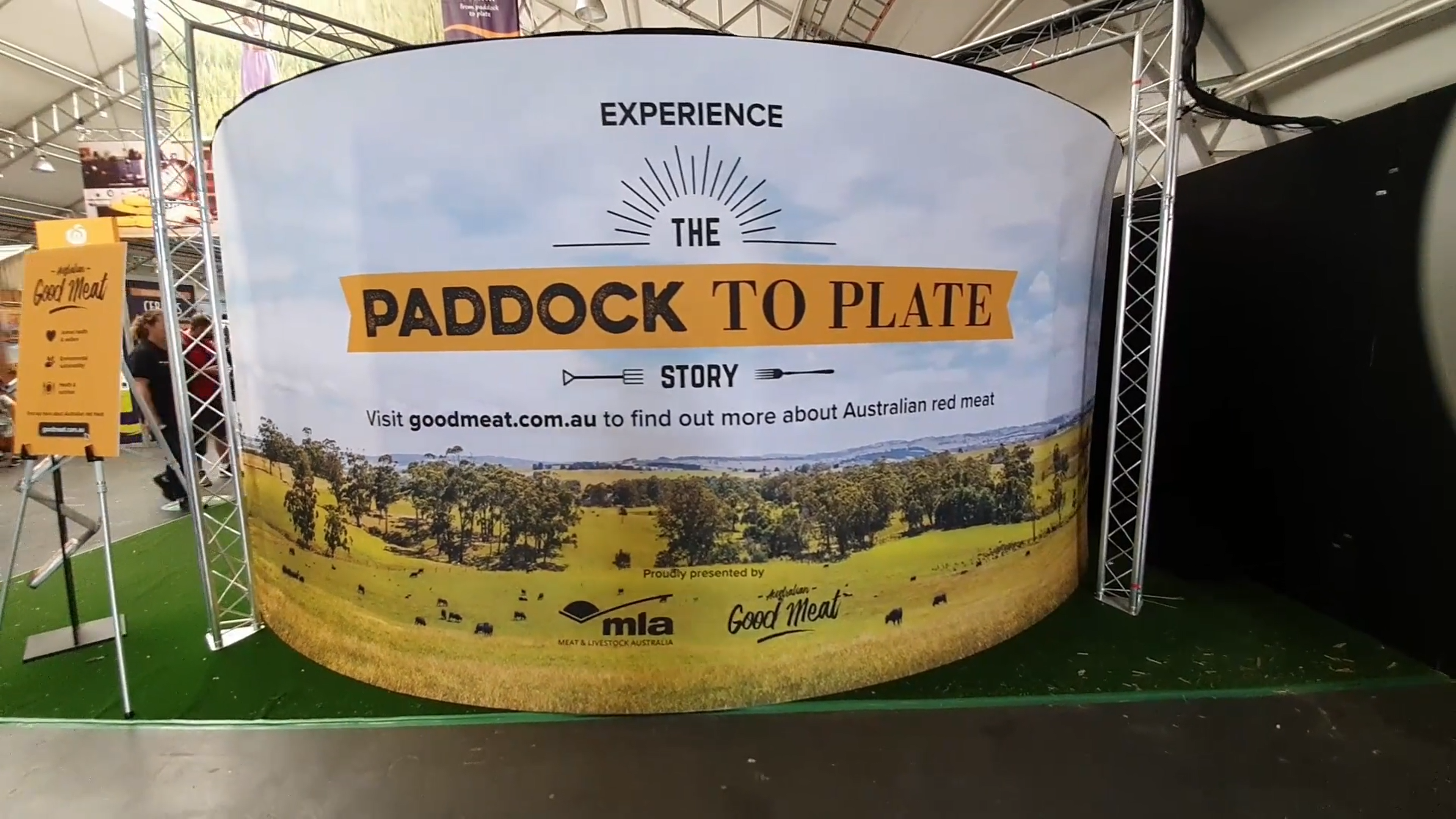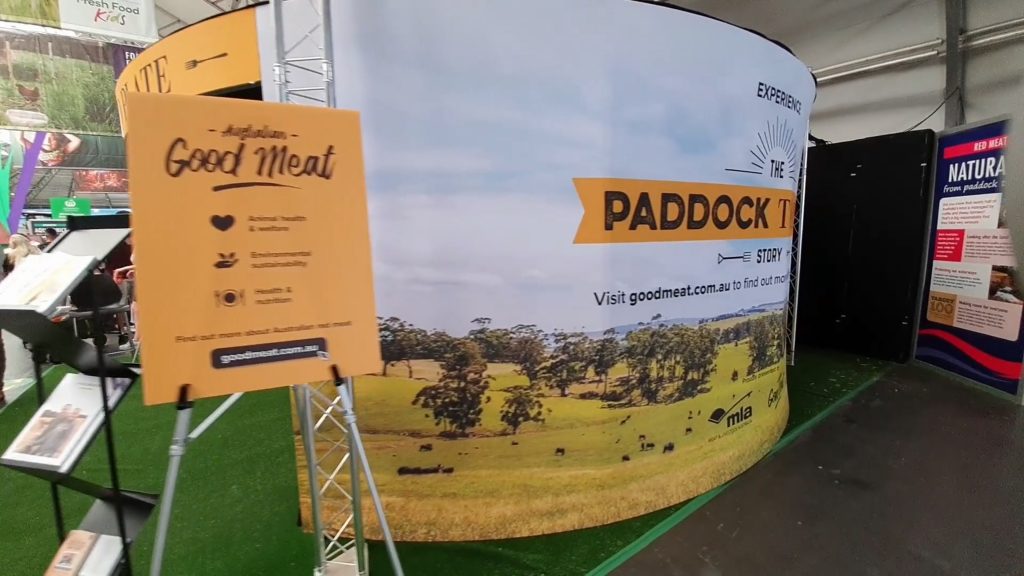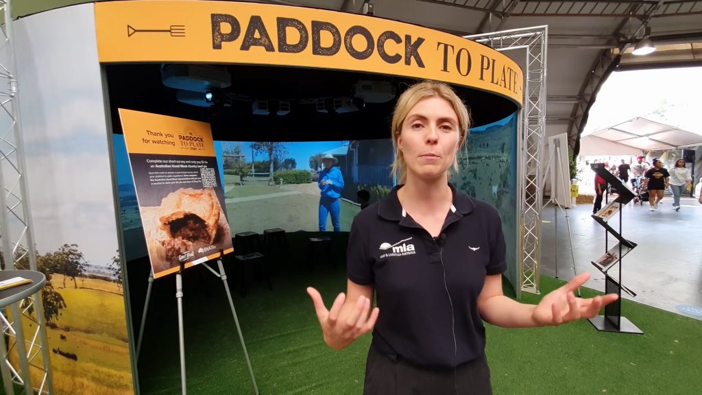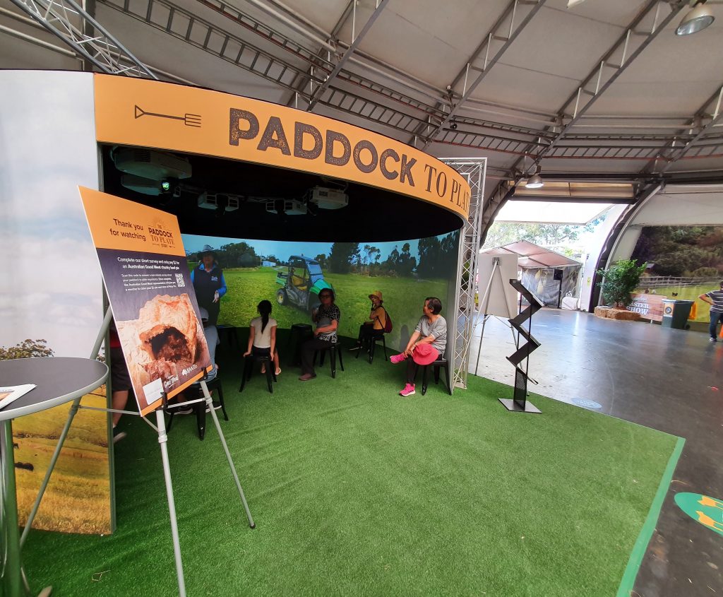 Inside the cylinder, visitors were able to watch a pre-created immersive video explaining the journey from ‘Paddock to Plate’, hearing from farmers in the meat and livestock industry and learning about the processes involved. MLA commented that many of the people visiting the stand were from built-up areas, and they loved being immersed in rural countryside that they perhaps hadn’t experienced before.
