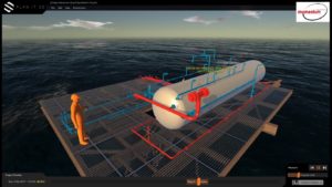 - Using 3D engineering drawings Sentient created a detailed model of the deluge system and a basic model of the offshore platform for location reference.