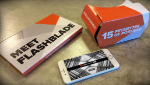 Pure Storage provides software-driven storage technology for IT customers. This is a tech savvy audience. The Pure Storage marketing team wanted to drive awareness of their latest hardware product, the FlashBlade, for a series of trade shows. Prior to the show, Pure Storage branded cardboard viewers were sent out to attendees with a link to download a custom VR mobile App.