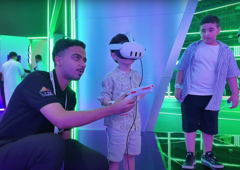 The VR shooting game immerses players in a virtual Riyadh city under alien invasion. Participants use the provided VR gun to eliminate the aliens within a set time limit. After entering their unique code, players jump straight into the action-packed gameplay.
