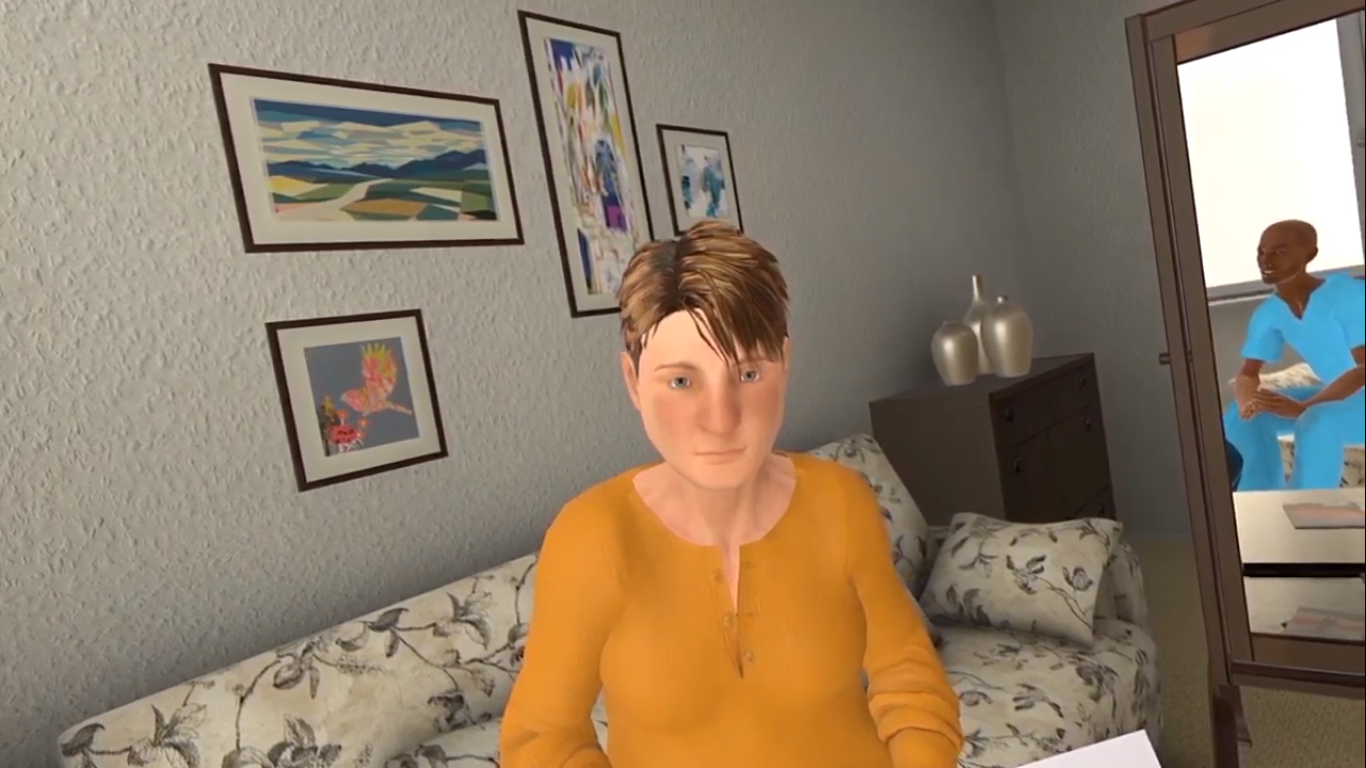 Building on a body of research on virtual embodiment by the likes of Mel Slater’s EventLab and Stanford University’s Virtual Human Interaction Lab, BodySwaps and Somewhere Else opted for a body-swapping format. The experience, co-written with Dr. Sue Barker from Cardiff University, recreates a realistic interaction between a Community Mental Health Nurse and Susan, a patient with severe clinical depression.