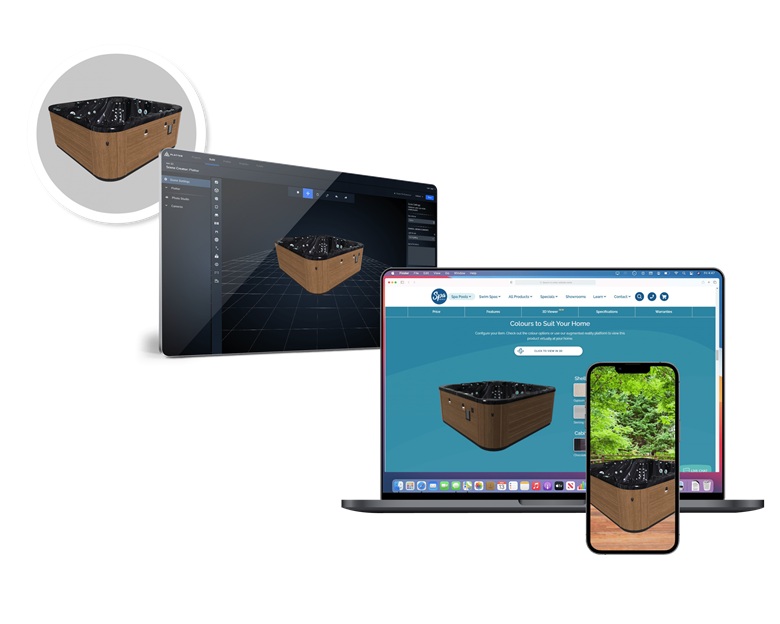 For a brand that takes innovation seriously, one of Spa World’s pain points has always been the size of its products; it is simply not cost efficient to manufacture, display and photograph every spa and its multiple variations in a showroom or catalogue, which means customers can’t always ‘try before they buy’ or know with certainty how a particular spa will look in their home.