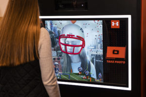 Scheels is a large sporting goods chain that specializes in experience-based retail. Animatronic characters, mini-bowling lanes, and larger-than-life saltwater aquariums are just some of the features of their locations. To complement their particular brand of destination retail, Under Armour commissioned NEXT/NOW to create an interactive kiosk that uses Augmented Reality to digitally apply signature objects of sports stars to the user: a mouthguard for Steph Curry, sunglasses and headphones for The Rock, a helmet and football for Tom Brady, etc..