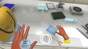 With modules on how to use tools like fire blankets and extinguishers in the heat of the moment as well as how to identify and appropriately handle various chemical spills, the chemistry lab VR training lessons provided immersive and interactive learning tools for situations that many students — and some teachers — had never encountered before. Through repetition within virtual reality, the users are then able to build confidence in tackling those scenarios should they arise in real life.